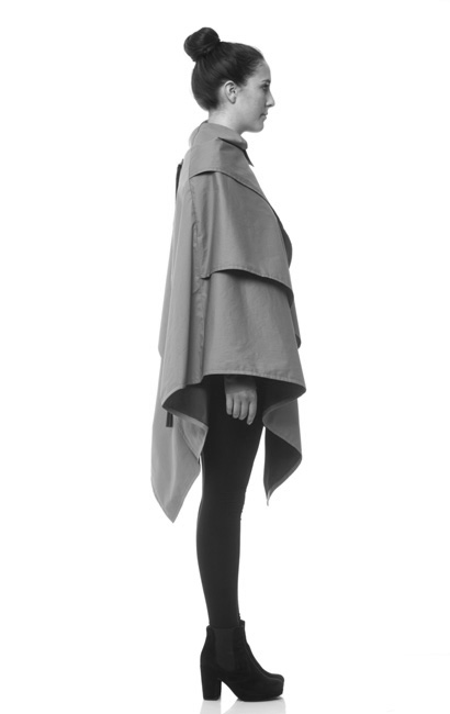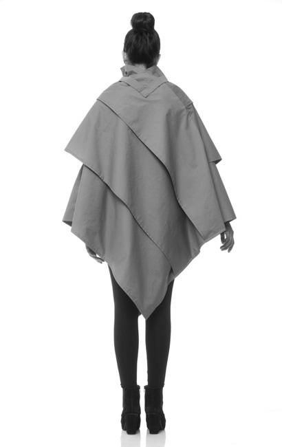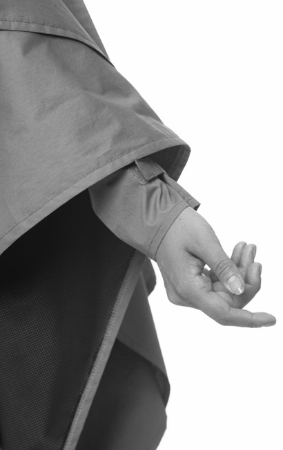 Ein knielanger Überwurf, in den man bequem hineinschlüpfen kann. Die Ärmel schützen die Arme auch beim Radfahren vor Regen. Die losen Stofflagen bieten luftigen Tragekomfort. Die Modelllänge im Größe S beträgt in der hinteren Mitte gemessen 105 cm.